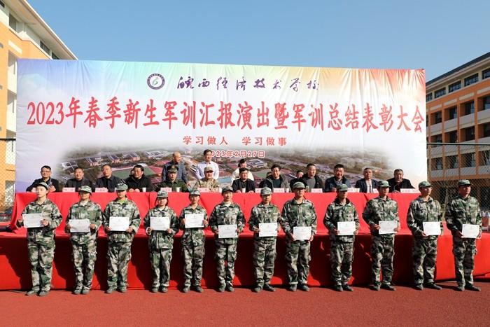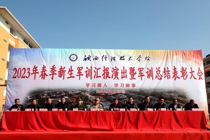 军歌嘹亮唱出中职风采,步伐铿锵诠释昂扬青春。2月27日下午,皖西经济技术学校隆重举行2023级春季新生军训汇报演出暨军训总结表彰大会。县人武部政委金虎、军事科科长江中杰,县委教育工委委员、县教育工会主任胡永阔,霍邱三中李恒中等生源学校校长,学校党政班子、各教学部部长、政教处人员、23级家委会代表、23级班主任和学生参加活动。大会由校党委委员、副校长李正局主持。
