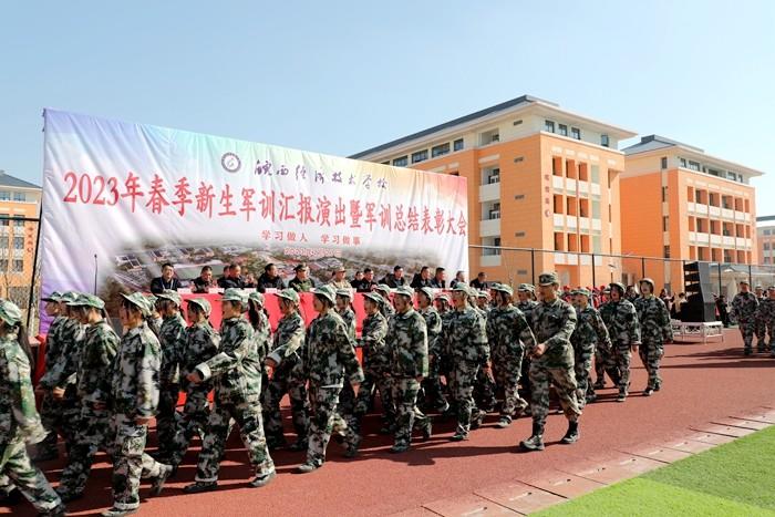 皖西经济技术学校党委书记、校长王秀江作总结讲话时表示,本次军训全体教官、老师、同学们不负重托,克服了低温、阴雨等不利天气的影响,始终以高标准要求自己,锤炼自己。充分继承和发扬了人民军队的优良传统和作风。在为期14天的军训中同学们始终坚持掉皮、掉肉、不掉队,流血、流汗、不流泪,用自己的实际行动诠释了新时代军人的精魂,彰显了新时代中职生的责任与担当。希望同学们能尽快把本次军训成果转化为今后努力学习、刻苦钻研的强大精神动力,进一步提升思想素质,培育良好道德品质,在皖西经济技术学校这所全县最大、最美、最新的校园中,努力把自己培养成一名德智体全面发展,能够为自己创造出美好幸福生活,为社会、为国家做出杰出贡献的优秀人才。(冯志勇 吴阳阳)