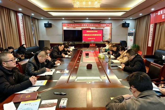 为加强班主任队伍建设,提升德育工作成效,做好2023级春招新生接待工作。2月7日上午,皖西经济技术学校在第二会议室召开新任班主任岗前培训会。校党委副书记来春富、政教处与各专业部学生工作负责人以及全体新生班主任参加了会议。会议由政教处主任刘勇主持。