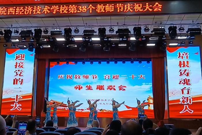 迎接党的二十大,培根铸魂育新人。在第38个教师节到来之际,9月9日下午,皖西经济技术学校在县教育培训中心隆重举行教师节庆祝大会。邀请了县教育局领导参加活动,学校全体教职工参加大会。大会由校工会主席胡令权主持。