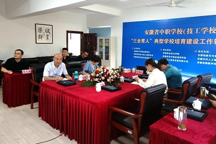 为指导各校开展好“三全育人”典型学校建设,落实立德树人根本任务,提高技术技能人才培养质量,由安徽省中华职业教育社、安徽省职业与成人教育学会、安徽省职业技术培训协会联合主办,安徽职业技术学院、安徽省安中职业培训学校、安徽任之教育发展有限公司承办的“中职学校(技工学校)‘三全育人’典型学校培育建设工作”专题辅导讲座活动于8月22日上午线上+线下结合,通过腾讯视频会议形式进行。当天,皖西经济技术学校党委书记、校长王秀江同志带领全体班子成员,机电、旅服、信息三个专业部副部长及参与方案编制的同志在分会场收看了本次讲座。校党委副书记来春富、机电工程部部长陶全红等在主会场参加活动。
