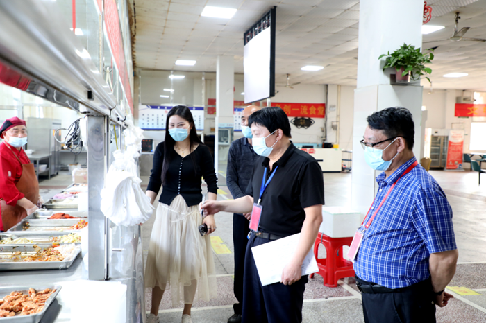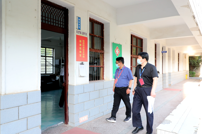 听取汇报后,验收组详细查阅了学校疫情防控工作有关记录台账等实证材料,并实地踏查了学校隔离室、学生食堂、物质储备中心等场所,对校园内疫情防控重点部位和关键节点进行了全面检查。