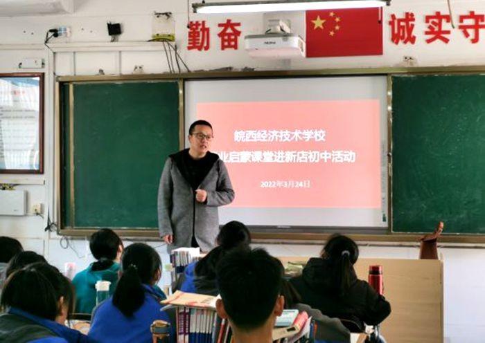 3月24日上午,皖西经济技术学校党委副书记来春富,专业课教师、培训部主任胡伟带领团队走进霍邱县新店镇初级中学,为九年级学生介绍了职业启蒙教育的重要意义、职业启蒙教育的内容等,让学生体验到职业教育的魅力,帮助同学们形成正确职业观、劳动价值观,并根据自身兴趣、能力进行毕业后学习路径的选择。随后,罗蕾老师以“沟通技巧”为主题,展示了一堂生动活泼的心理学课堂,让学生体会到沟通的重要性,初步了解了如何进行有效沟通。