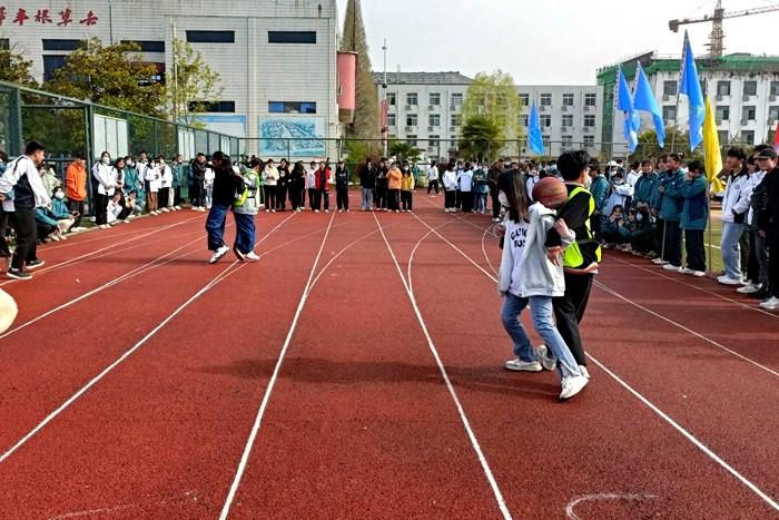本次活动邀请了政教处副主任周吉成、政教处助理李涛对现场活动进行了专业指导评判。来自本部的高一、高二共有11个班级参加了比赛。比赛的四个项目分别是《小马过河》接力赛、《背球接力赛》、《众人一条心》和《滚雪球》。因为都是集体项目,所以非常考验同学们团队合作的精神。