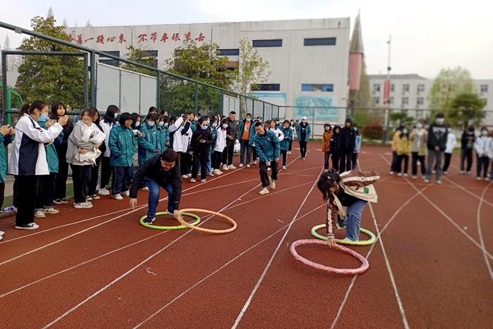 首先在小马过河这个项目中,参赛的同学们快速地摆放呼啦圈,即使偶有失误,但没有责备声,只是同学间互相鼓励的声音。在背球接力赛项目中,两名同学手挽手、背上夹球,喊着同样的口号,向着同一个方向前进。短短的几十米,跌倒或成功,他们都荣辱与共。而由八名同学肩搭肩一起组成的众人一条心也在同学们的号子声中前进着,同学们的团结是这众人一条心最好的招牌。最后一项滚雪球把比赛队员们拉成了一条长龙,热闹的氛围把整个运动场推向了高潮。整个比赛过程的气氛热烈但又不失轻松愉快,参赛的同学们尽力完成每一项项目,全身心的投入到比赛当中,在场同学不时地鼓劲呐喊不时地欢声笑语。同学们将青春的光芒发挥到极致,将热情染满整个活动现场。