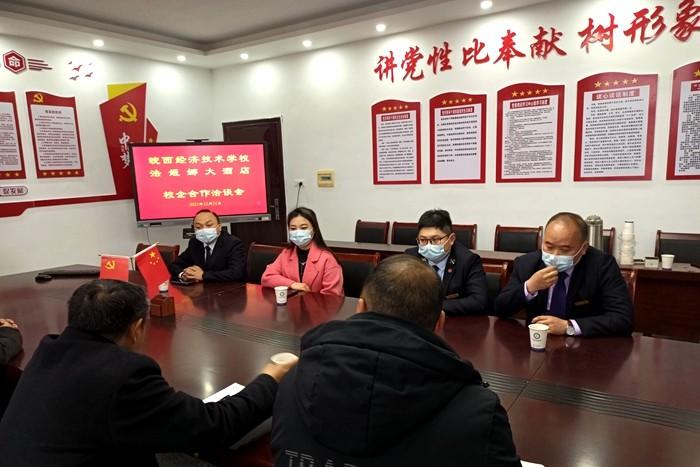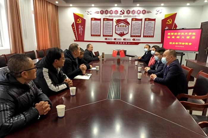 校企合作谋发展,产教融合促创新 。为进一步提升专业建设水平,深化校企合作成果,助力地方经济发展,12月24日下午,皖西经济技术学校与霍邱法姬娜大酒店校企合作洽谈会在学校行政楼三楼党员会议室举行。霍邱法姬娜大酒店总经理罗标、餐饮总监刘成军、前厅主管王彬彬、人事主管豆贤云,皖西经济技术学校副校长李正局、招生就业办主任闻德全、政教处主任刘勇、旅游服务部部长童宇东、副部长郑勇参加了此次洽谈会。