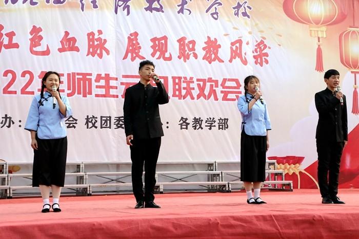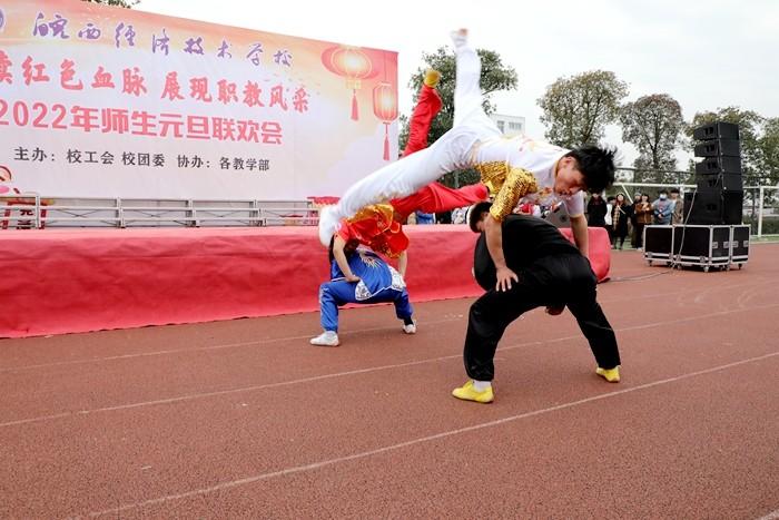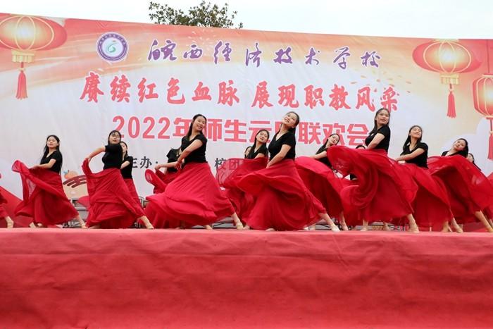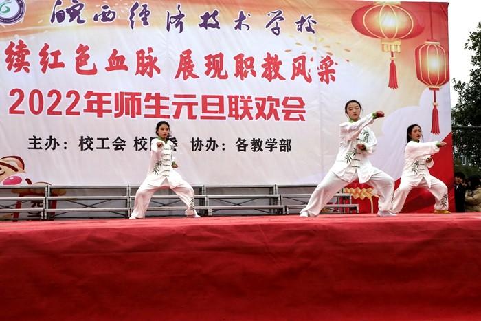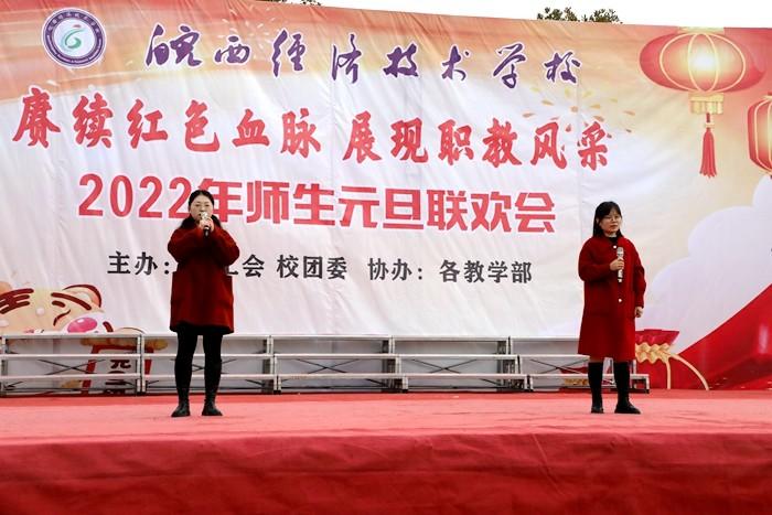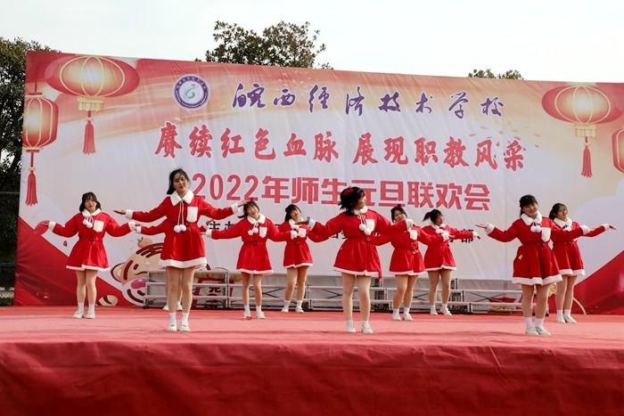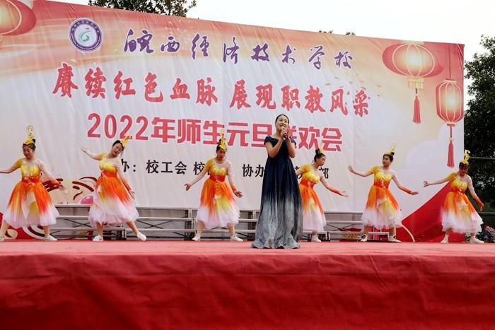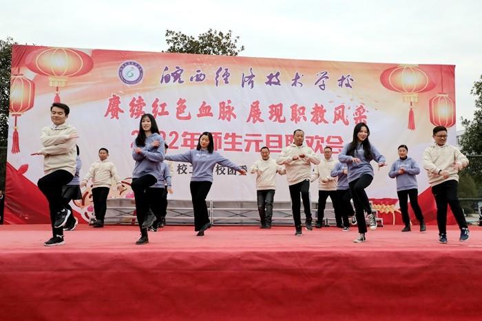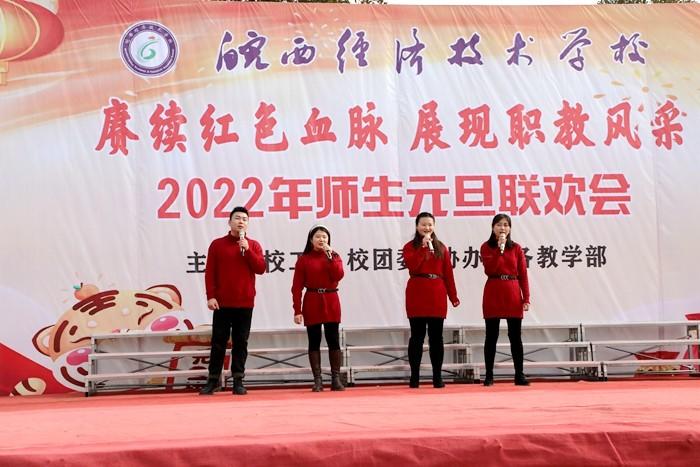 学校党委书记、校长王秀江致新年贺辞,他满怀深情对2021年学校工作作了总结。展望2022年,他强调未来的职业教育将乘风破浪,迅速发展,我们将在新的一年努力争创A类学校,坚持多元化办学、促进特色发展,抓住机遇,乘势而上,再创新局面,再展新风采。随后,联欢会在热闹喜庆的《恭喜发财》舞蹈中拉开了序幕,此次联欢会共有22个节目,充分展示了皖西经济技术学校师生多才多艺、勇于创新的风貌。其中,《相亲相爱》述说了对美丽新校园的展望和期待,《班主任之歌》展现了职教同仁日常生活,引燃全场气氛,传武社和竞技操带来的武术和健美操表演,青春活力、激情四射,赢得阵阵喝彩,乐器演奏、小品、相声、舞蹈、十佳歌手的倾情演唱,让舞台精彩纷呈,高潮迭起,赢得了现场观众的热烈掌声。最后,联欢会在合唱《向往》中圆满落下帷幕。