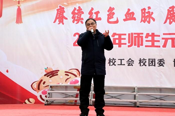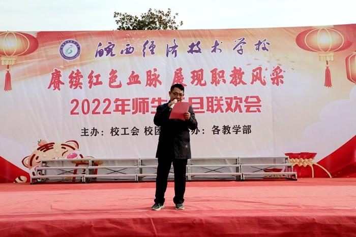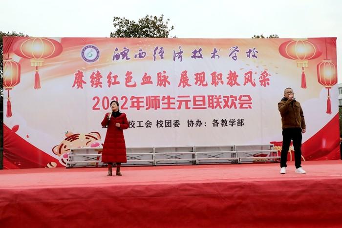 12月31日下午,皖西经济技术学校在校足球场隆重举行2022年“赓续红色血脉 展现职教风采”师生元旦联欢会。新店镇原政协主席涂红琴,岔路镇文化站站长、派驻共同村副点长唐兴杰应邀参加联欢会,皖西经济技术学校全体教职工和学生参加联欢会。