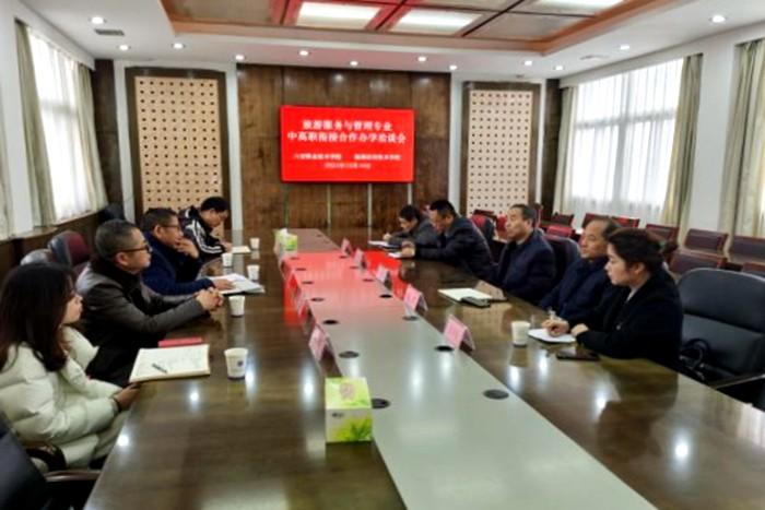 为了进一步加强旅游服务与管理专业建设,落实旅游服务与管理专业中高职衔接事宜,12月16日上午,皖西经济技术学校组织旅游服务部、“王振中旅游服务与管理专业名师工作室”“王振中微课程建设名师工作室”等相关成员赴六安职业技术学院交流中高职衔接合作办学洽谈会。六安职业技术学院副院长孙勇,大别山职教集团副秘书长黎明,六安职业技术学院招就办主任杨继葆、副主任袁学勇、幼儿教育与旅游管理学院院长史冬防,皖西经济技术学校教科室主任王振中、教科室副主任童宇东、旅游服务部副部长郑勇及相关专业课教师参加了洽谈会。