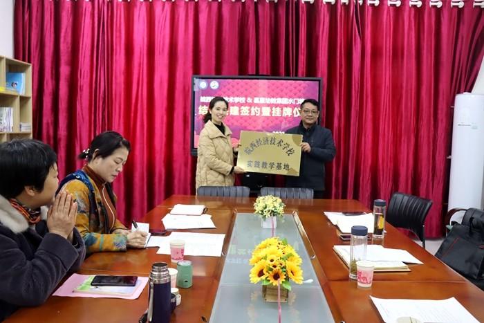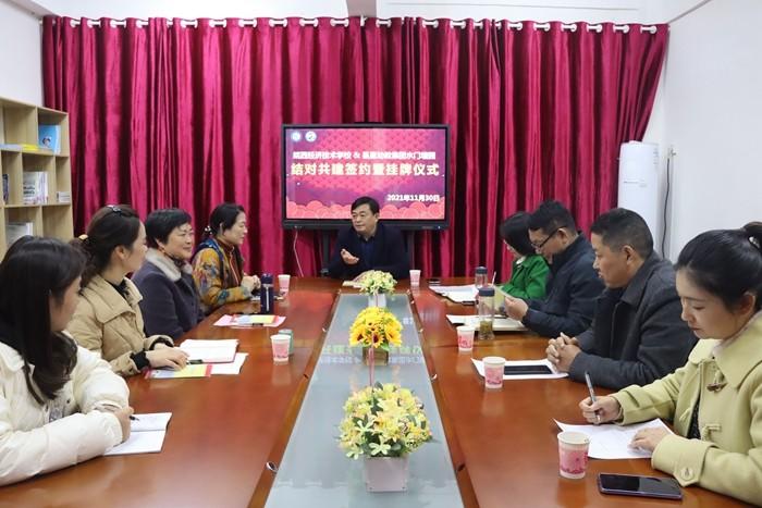 为加强中等职业教育与学前教育融通,彰显两校办学特色,发挥两校办学互补功能,推动两校共同发展。11月30日下午,皖西经济技术学校与霍邱县直幼教集团开展共建活动并举行挂牌仪式。县委教育工委委员、县教育局工会主任胡永阔,县教育局民管办主任徐淑芬,皖西经济技术学校党委书记、校长王秀江,副校长韩家友、教务处主任王丽、专业一支部书记关亚兵,县直幼教集团总园长薛芳,水门塘园园长乐运兰、副园长祁莉等参加会议。会议由乐运兰主持。