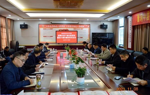 为深入贯彻落实全面从严治党要求,深化党风廉政教育,进一步筑牢全校党员领导干部拒腐防变思想防线,营造风清气正的校园环境,11月8日下午,皖西经济技术学校在第二会议室召开新聘中层干部任职谈话暨班子集体廉政教育会议。县委教育工委委员、县教育工会主任胡永阔,县纪委监委派驻教育局纪检监察组副组长沈长睿出席会议并讲话,全体校领导,续聘、轮岗、新聘中层干部参加会议,会议由校党委副书记来春富主持。