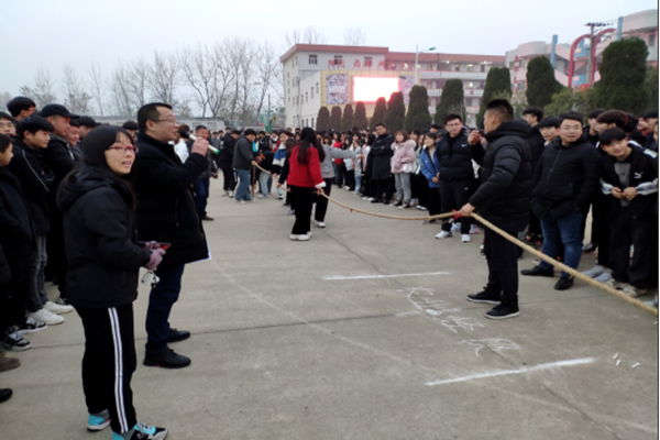 本次比赛以“精诚团结,顽强拼搏”为主题,在拔河比赛过程中,各个班级的队员以胜不骄、败不馁的精神,个个精神饱满、斗志昂扬。拔河比赛一开始,现场气氛异常高涨。双方队员紧紧抓牢手中的绳子,勒绳下腰,降低重心,齐心协力往后拉。集体的努力,众人的配合,在一阵阵呐喊与掌声中化作无穷的动力。操场边上,班主任和班级同学都在为参赛的班级和同学加油助威,加油声响彻操场。