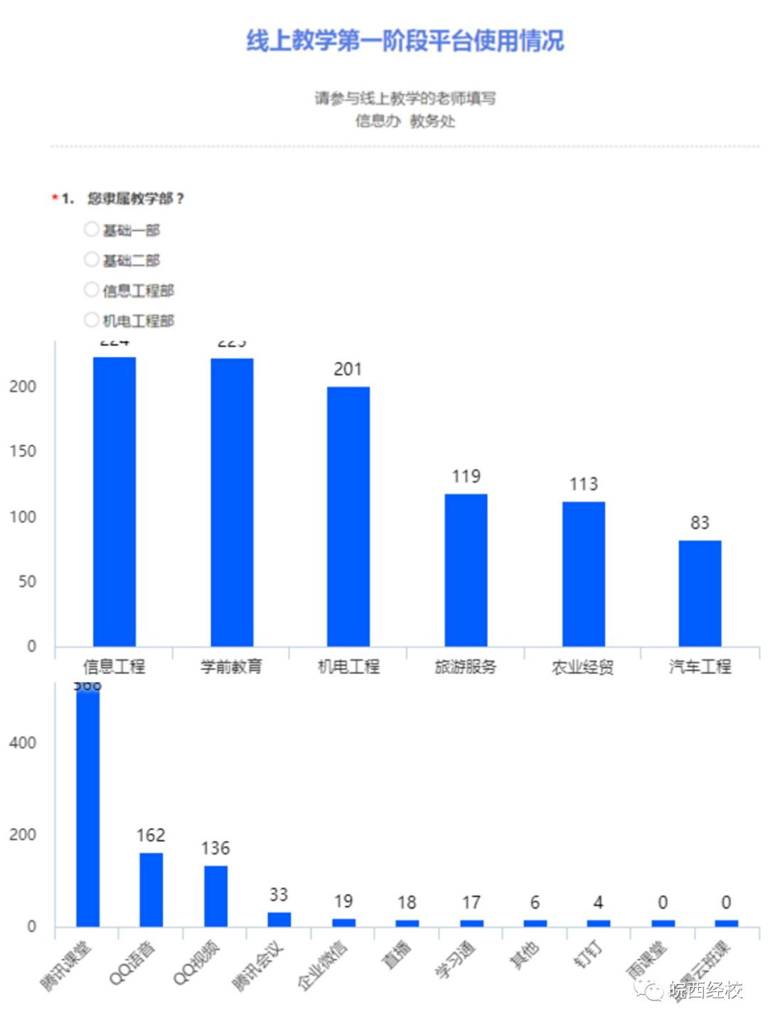 教务处和信息办以线上问卷形式,分别调查了老师和学生线上教学和学习条件的相关情况。