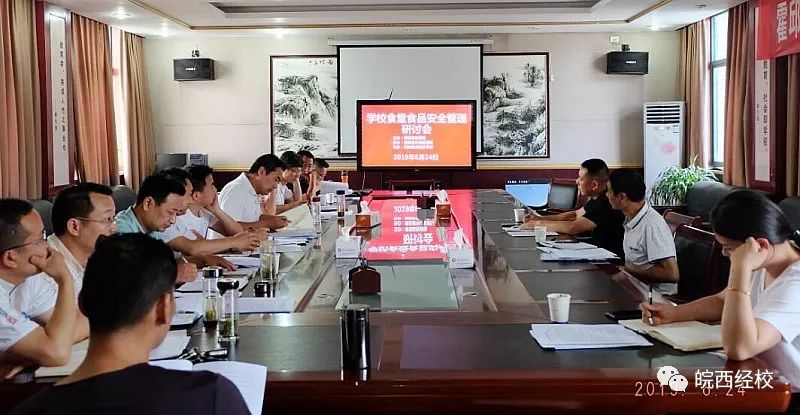 为进一步做好学校食堂食品安全工作,6月24日下午,霍邱县教育局和霍邱县市场监管局在学校第二会议室联合召开了学校食堂食品安全工作座谈会。县教育局安全办负责人潘光华、市场监管局新店监管所副所长罗会成、学校食堂总经理徐小雪、分管后勤工作副校长贾仁宝、以及总务处、政教处、各教学部负责同志出席。座谈会由贾仁宝副校长主持。