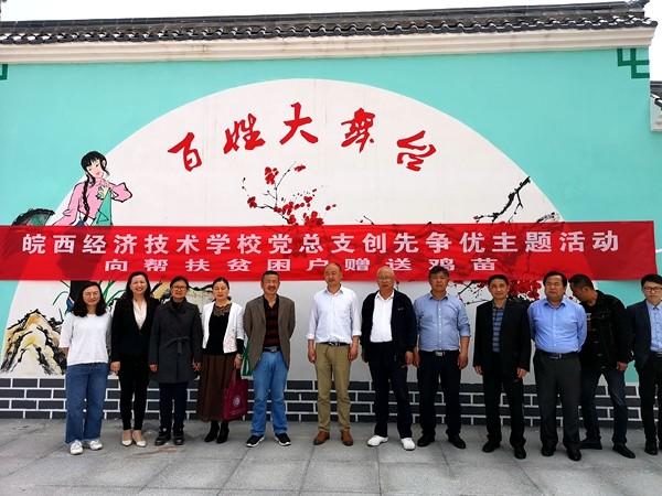 2019年4月24日上午,为深入开展“创先争优”主题党日活动,皖西经济技术学校教学第一支部、教学第二支部和行政支部的党员在党总支的组织下,到三流乡马南园村向帮扶贫困户赠送鸡苗,并在马南园村委会院内举行赠送鸡苗发放仪式,学校党总支书记、校长王秀江同志出席仪式并发表重要讲话。