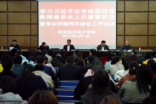4月1日下午,皖西经济技术学校在第一会议室召开师德师风建设工作会议。本次会议旨在进一步增强教师的纪律意识和廉洁从教意识,鼓励广大教师立足本职岗位,奋发有为、建功立业。全校教职工参加会议。
