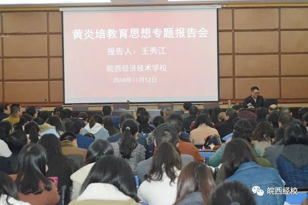 为全面落实霍邱县中华职业教育社关于社员小组学习制度,深入学习黄炎培教育思想,推动学校持续发展,11月12日,皖西经济技术学校社员小组举办黄炎培教育思想专题报告会,皖西经济技术学校240名教职工聆听了报告。霍邱县中华职业教育社副主任、皖西经济技术学校校长,“第六届黄炎培职业教育杰出校长”王秀江从“黄炎培职业教育思想形成的四个阶段”“黄炎培职业教育思想的主要内容”两个方面,结合中国职业教育发展和所任职的职业学校发展,阐述了黄炎培职业教育思想的形成过程、主要内涵和实践价值,报告深入浅出,事例详实,语言生动,视野开阔,既有理论深度,又有实践指导;特别是坚定了全校教职工在教育教学过程中贯彻黄炎培职业教育思想的行动自觉。