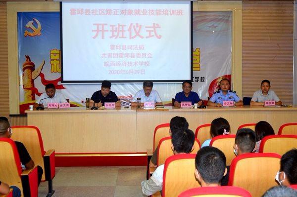 2020年6月29日上午,霍邱县社区矫正对象就业技能培训班开班仪式在皖西经济技术学校举行。霍邱县司法局党组书记、局长周明,共青团霍邱县委党组成员、副书记华中旭,县司法局社区矫正大队教导员廖卫锋,皖西经济技术学校党总支书记、校长王秀江,副校长李正局、韩家友等出席开班仪式,会议由李正局主持。